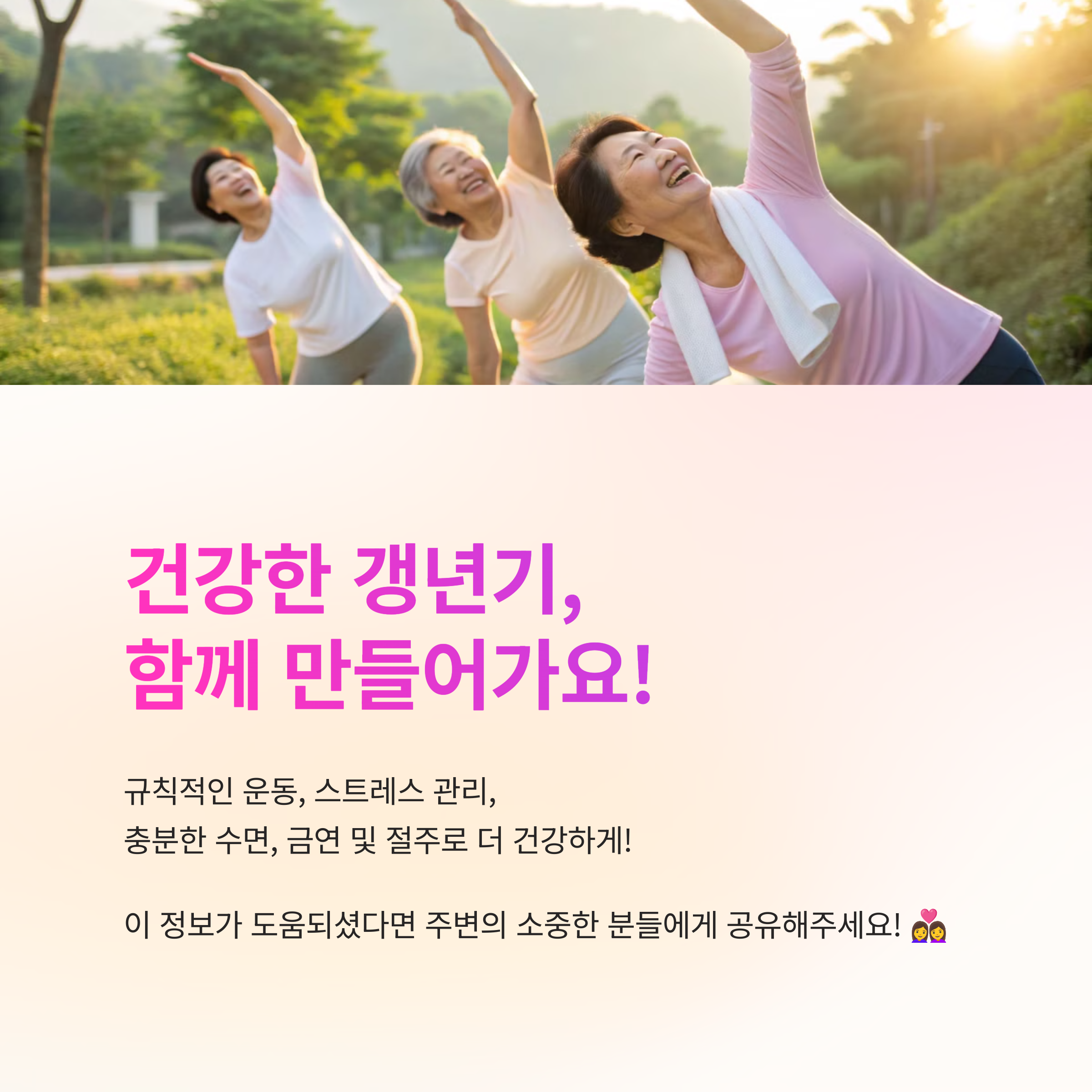 여러분은 갱년기를 건강하게 보내기 위해 어떤 방법을 실천하고 계신가요?