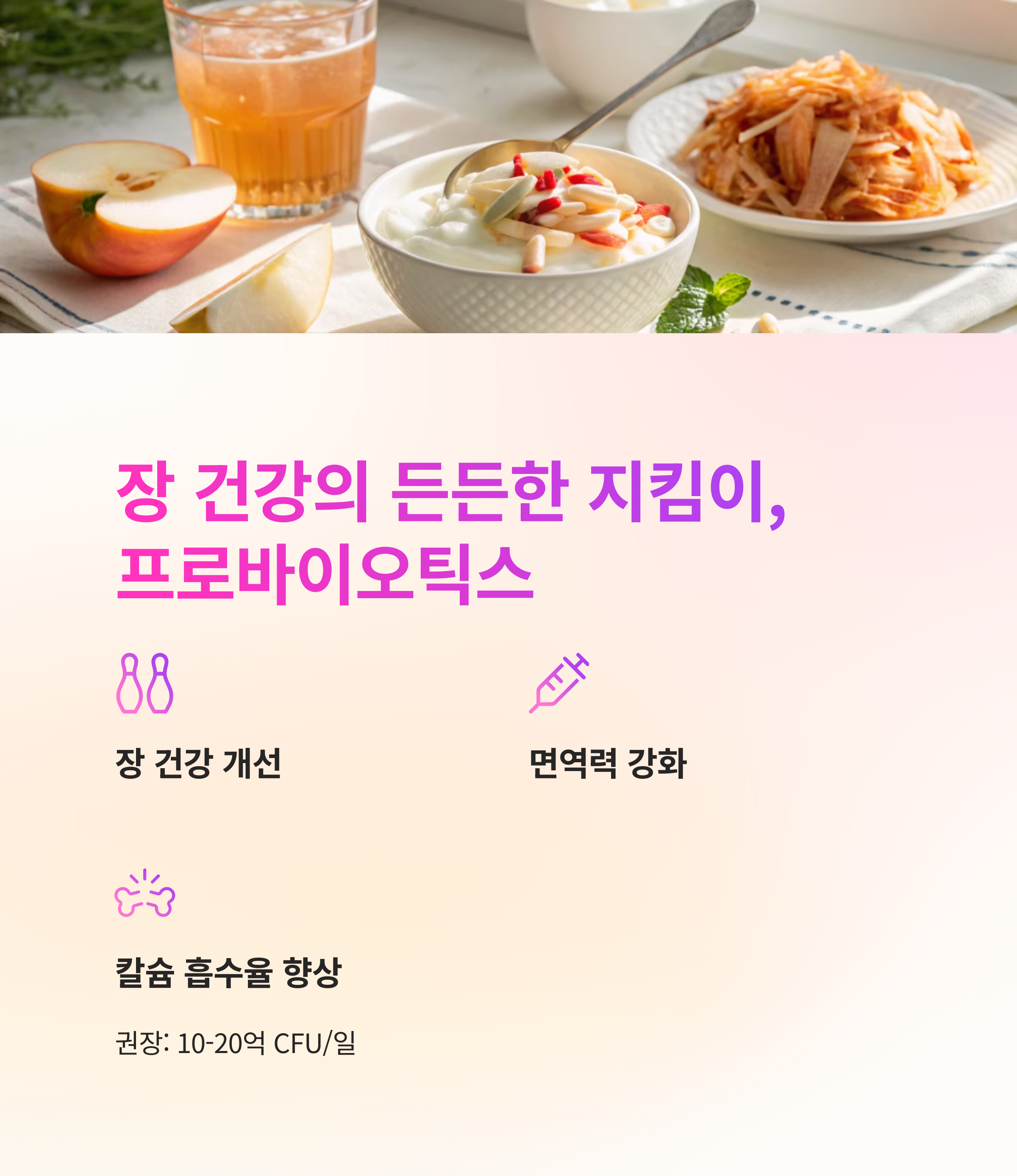 영양제와 함께 칼슘이 풍부한 유제품, 두부, 견과류, 채소 등을 함께 섭취하면 효과를 극대화할 수 있습니다.