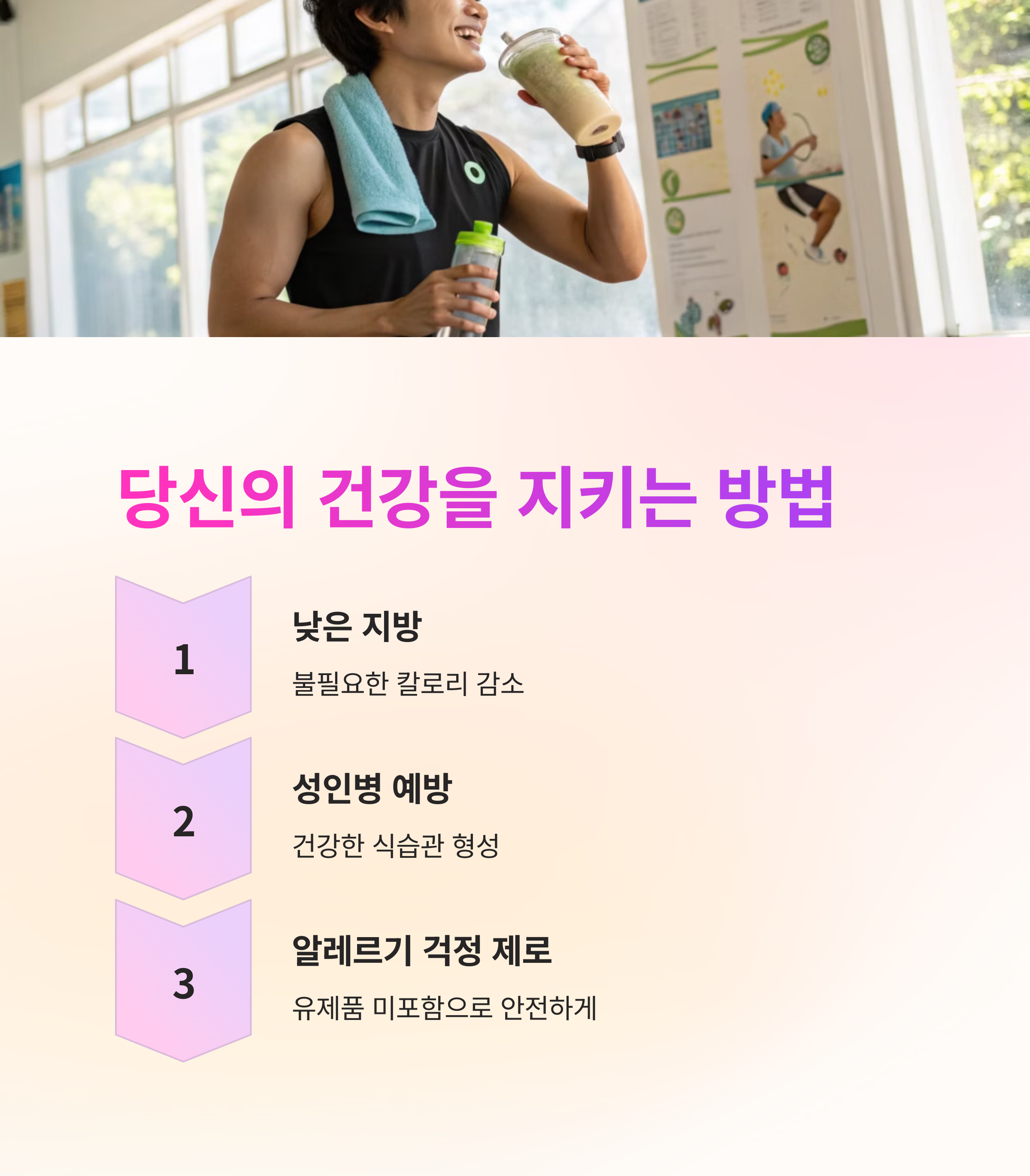 또한 지방 함량이 낮고 유제품을 포함하지 않아 락토프리 식단을 원하는 분들에게도 적합합니다.