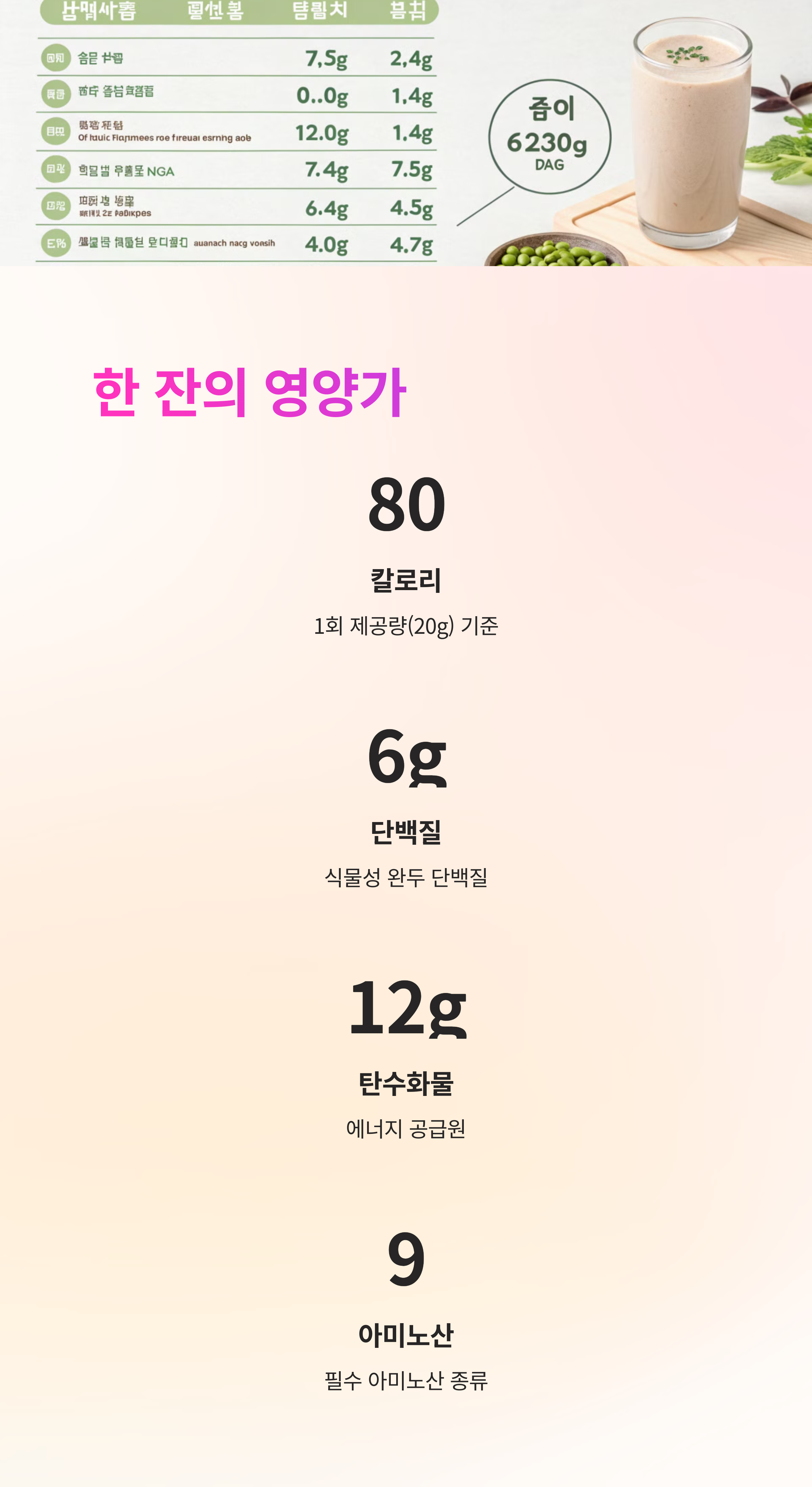 완두 단백을 주원료로 한 이 제품은 포만감이 높아 아침 식사 대용으로 손색이 없으며, 단백질 보충이 필요한 분들에게도 좋은 선택이 될 수 있습니다.