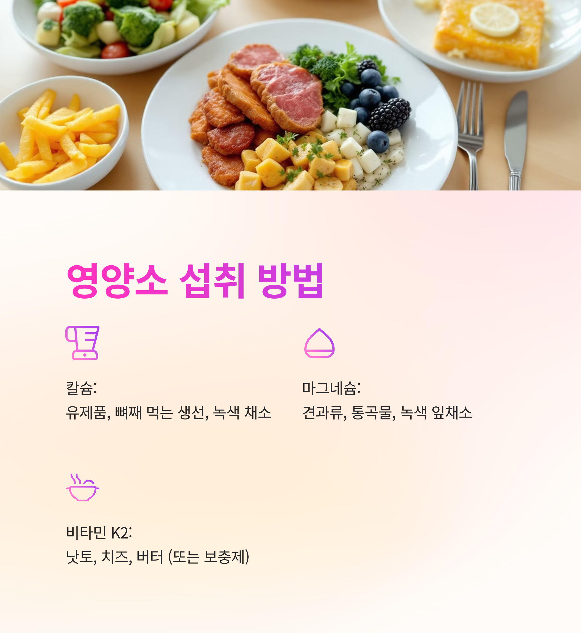 | 칼슘 | 마그네슘 | 비타민 K2 |