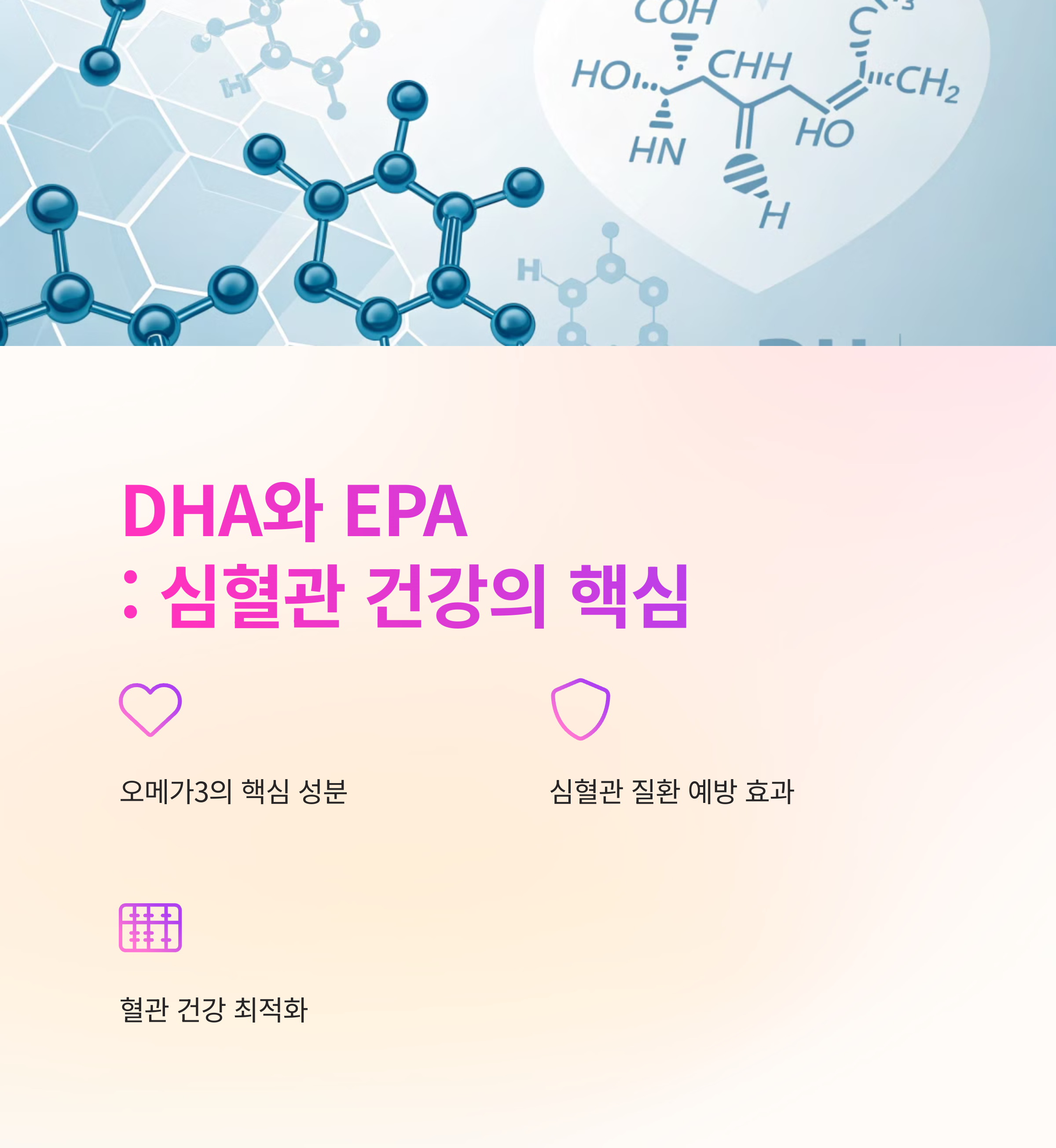 | 오메가3 | 혈행 개선과 심혈관 건강 보호에 필수적인 영양소 |