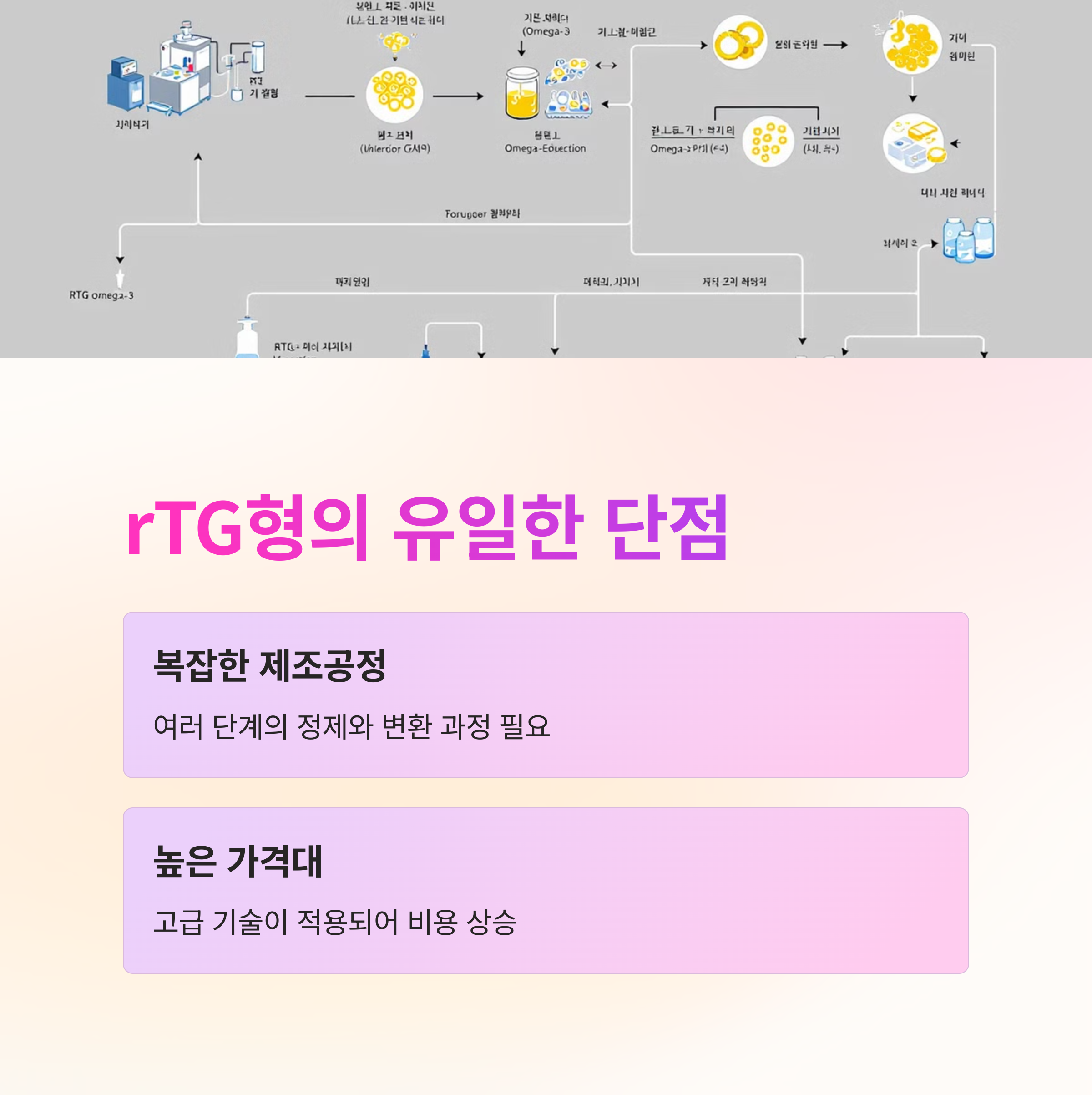 하지만 rTG형은 생산 과정이 복잡하여 가격이 상대적으로 높은 편입니다. 따라서 예산과 효율성을 고려하여 자신에게 맞는 오메가3를 선택하는 것이 중요합니다.