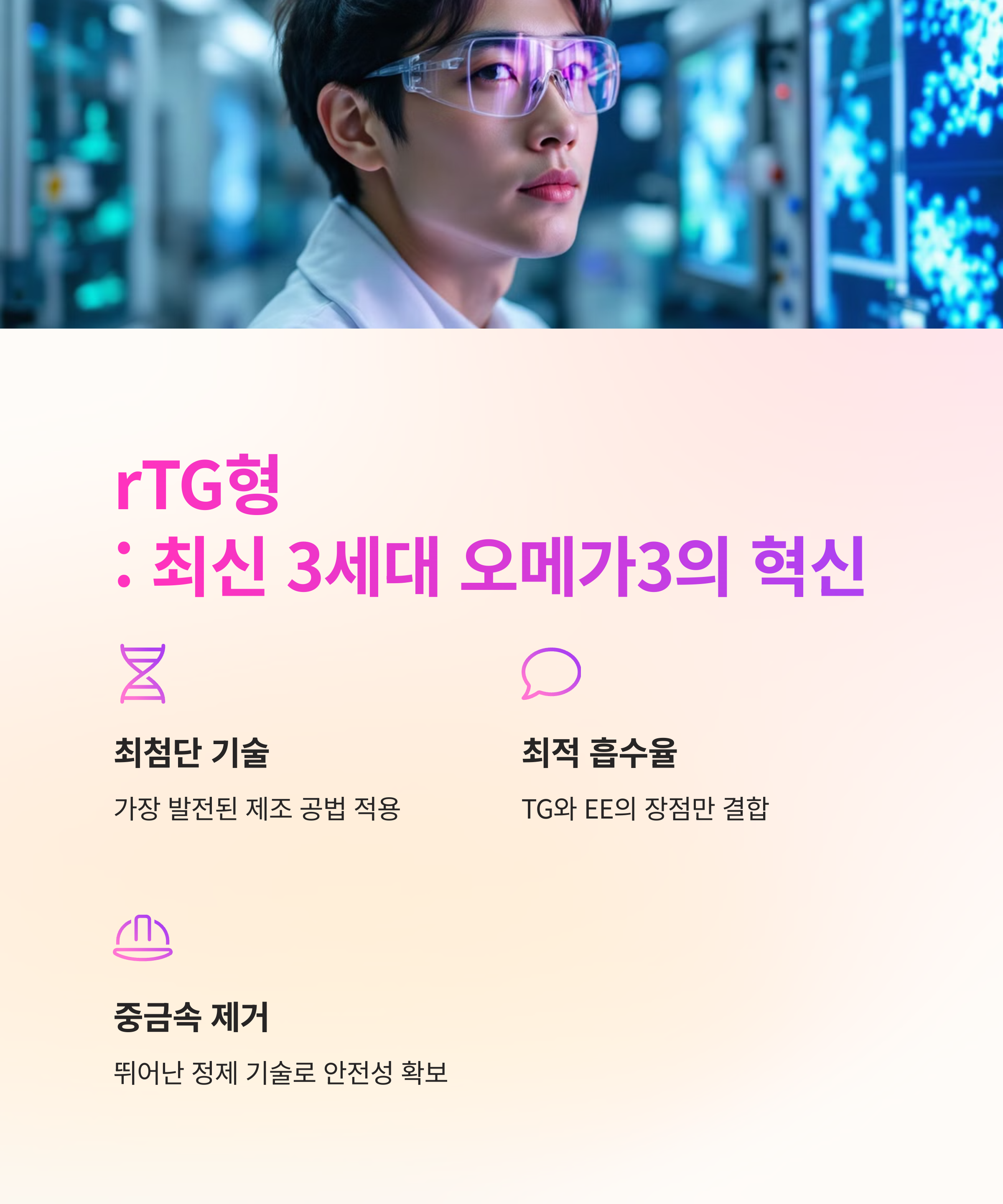 건강을 위해 오메가3를 찾고 계신가요? 하지만 다양한 분자 구조(TG, EE, rTG) 중에서 어떤 제품을 선택해야 할지 고민되시죠?