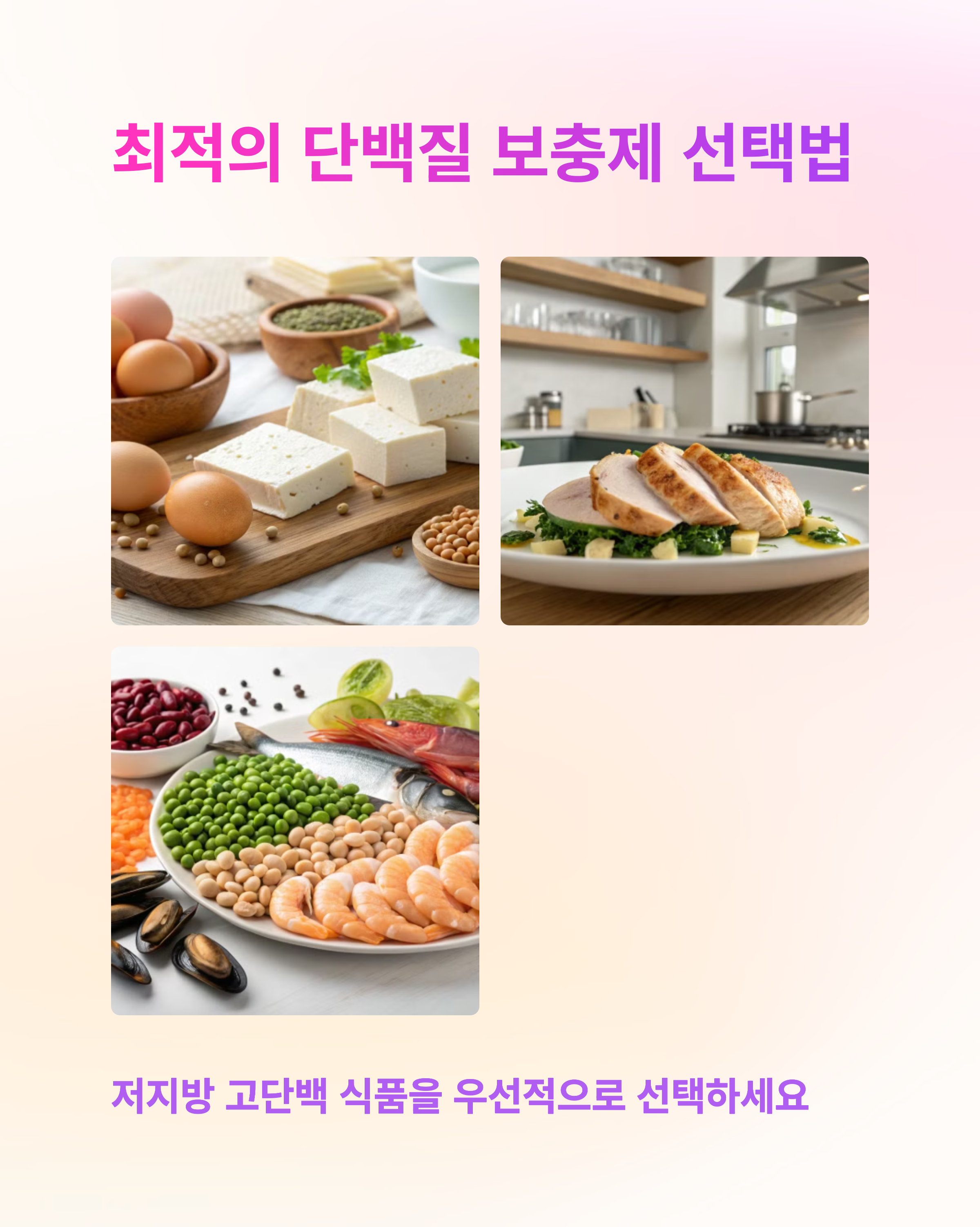 히 단백질 보충제를 선택할 때는 달걀, 두부, 닭 가슴살, 콩, 어패류 등 저지방 단백질 원료를 활용하는 것이 건강에 더욱 좋습니다.