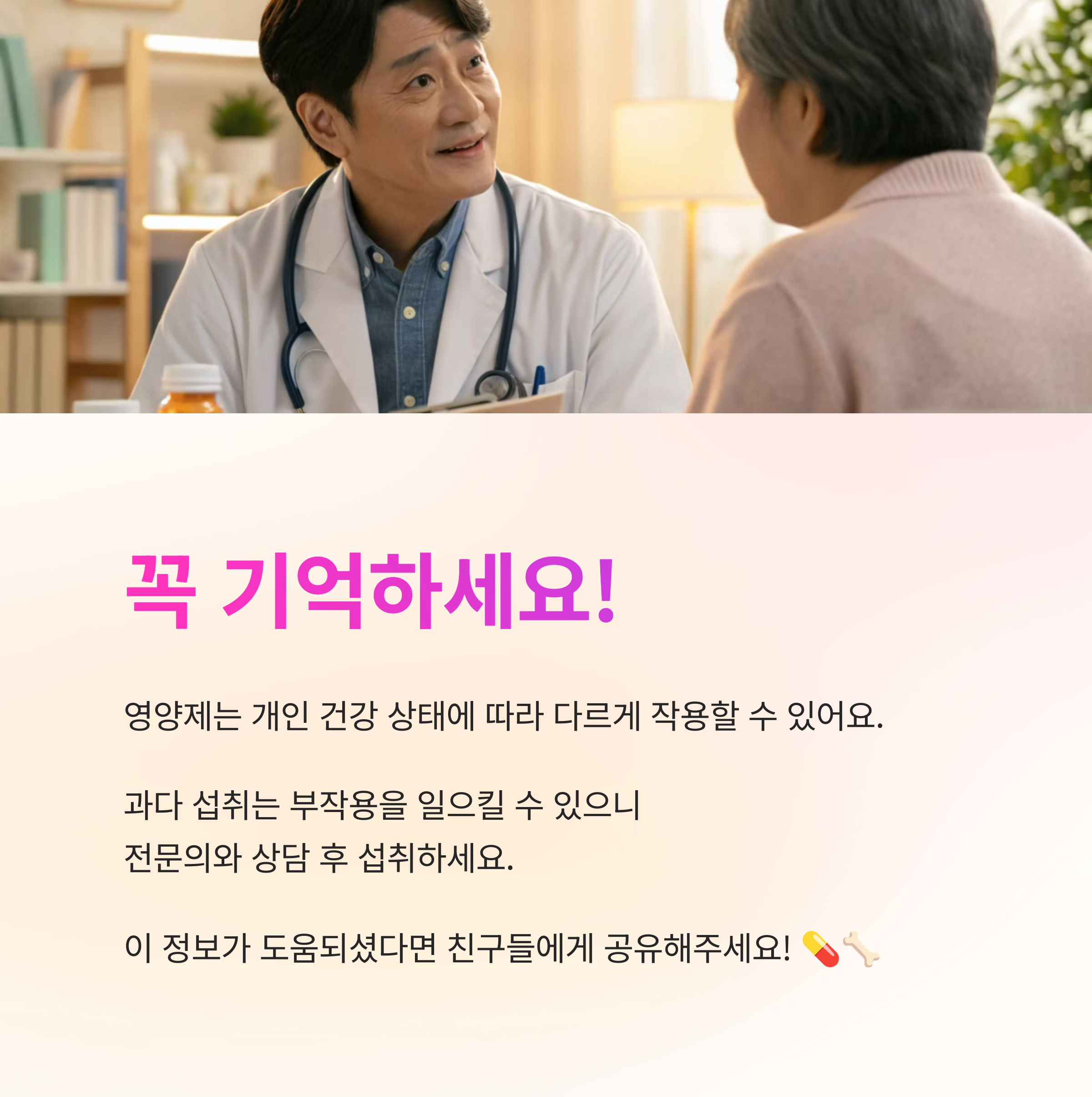 적절한 비율과 올바른 복용법을 지키면 뼈 건강을 더욱 효과적으로 관리할 수 있습니다.
