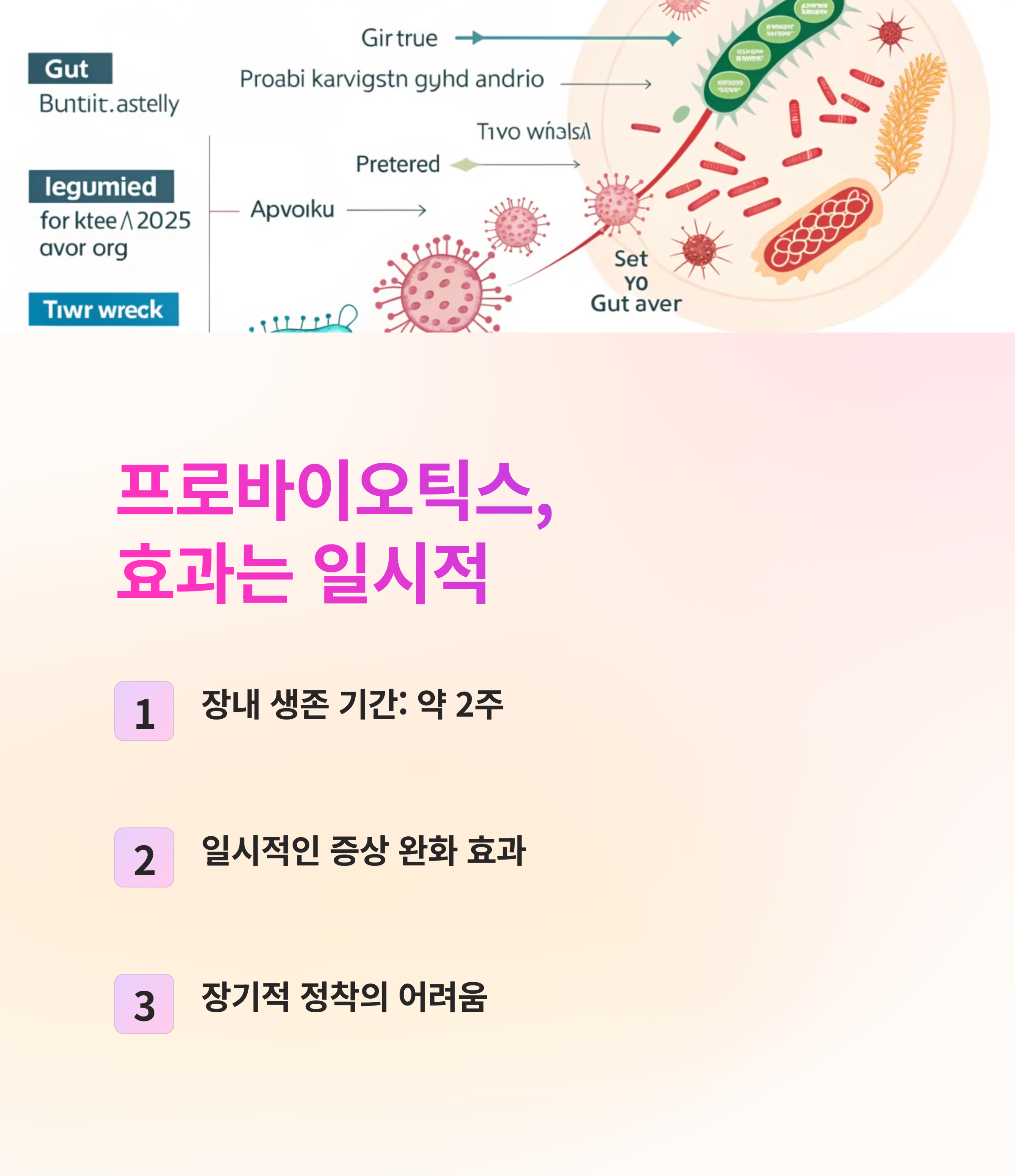 프로바이오틱스는 장에서 2주간만 생존할 수 있으므로 꾸준한 섭취가 중요합니다.