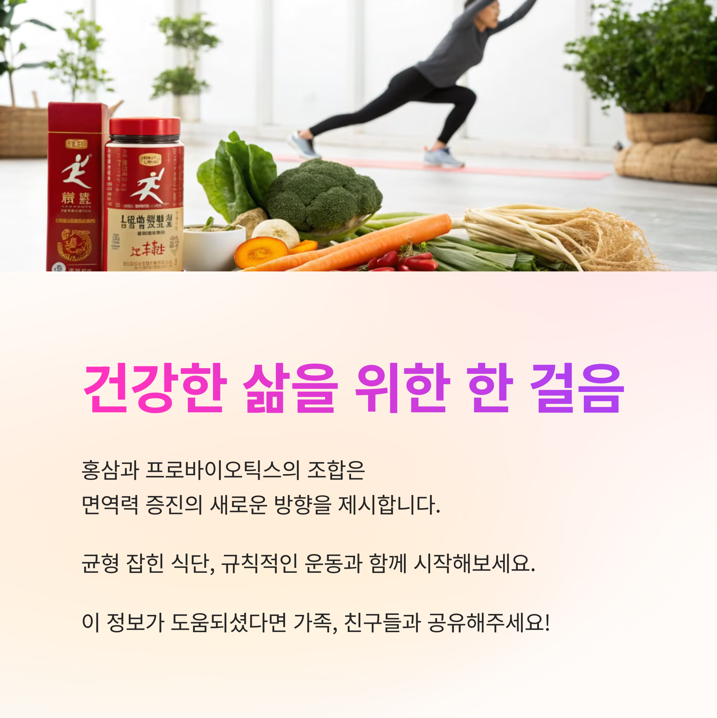 홍삼과 프로바이오틱스를 함께 섭취하면 면역력 강화에 더욱 효과적입니다.