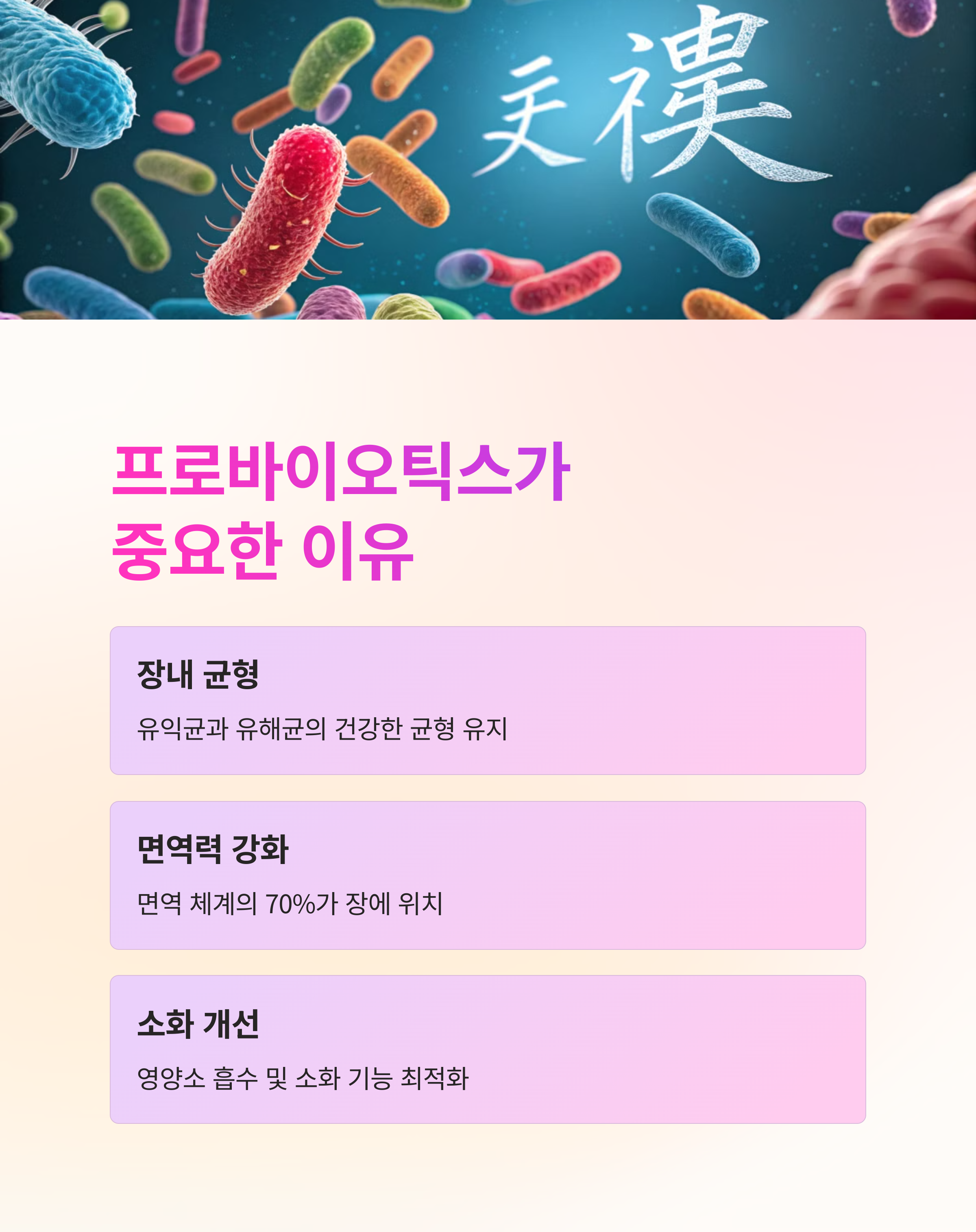 이는 장 건강뿐만 아니라 전반적인 면역 체계를 튼튼하게 만들어 줄 것입니다.
