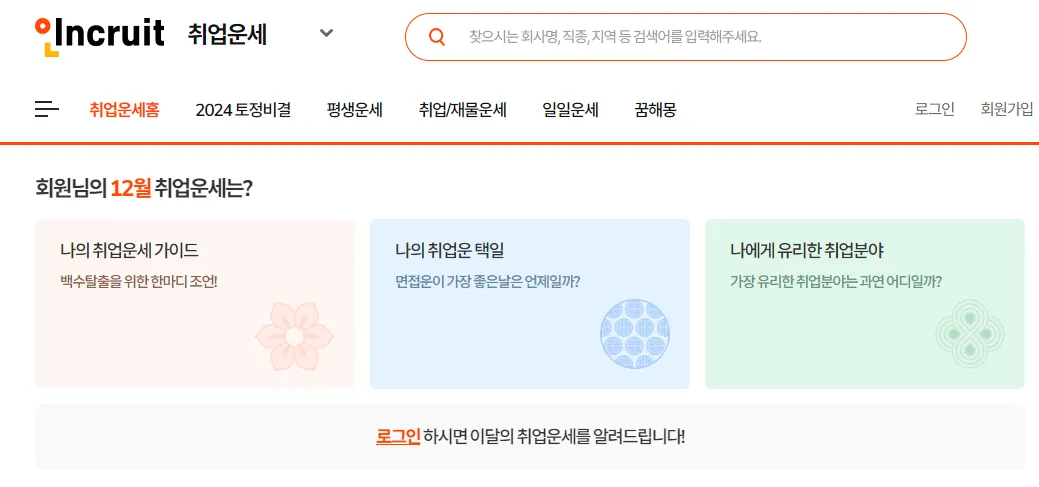 1. 인크루트 취업 운세보기