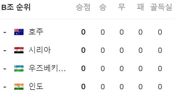| B | 호주, 우즈베키스탄, 시리아, 인도 |