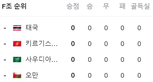 | F | 사우디아라비아, 태국, 키르기스스탄, 오만 |