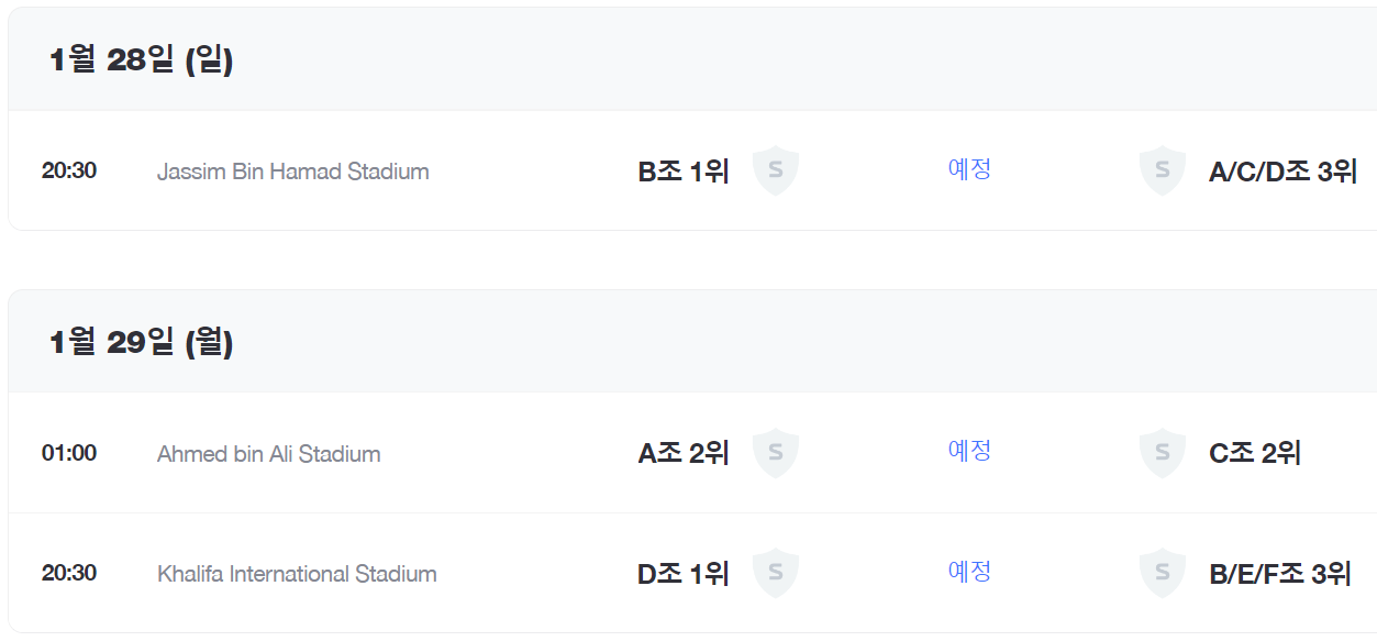 | 2024. 1. 25. (목) 오후 8:30 | 요르단 vs 바레인 |