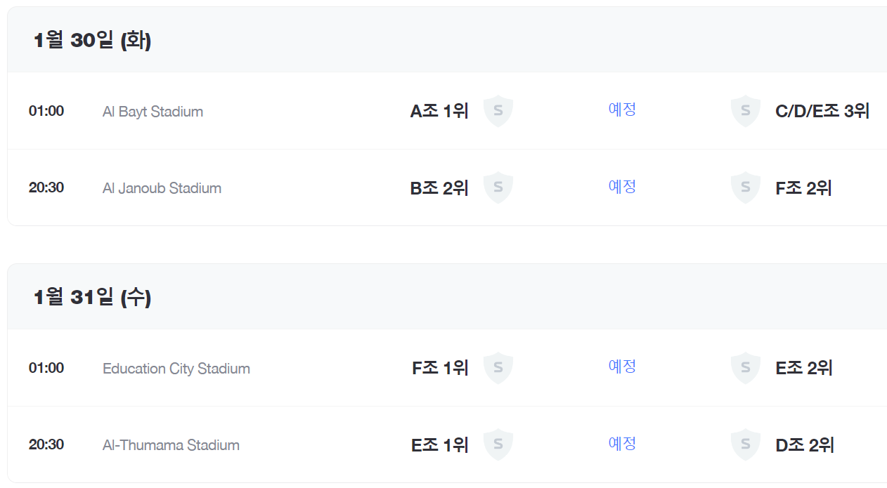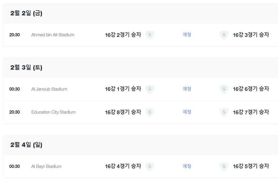 16강전 경기 일정