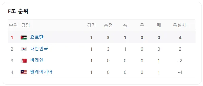 | E | 대한민국, 말레이시아, 요르단, 바레인 |
