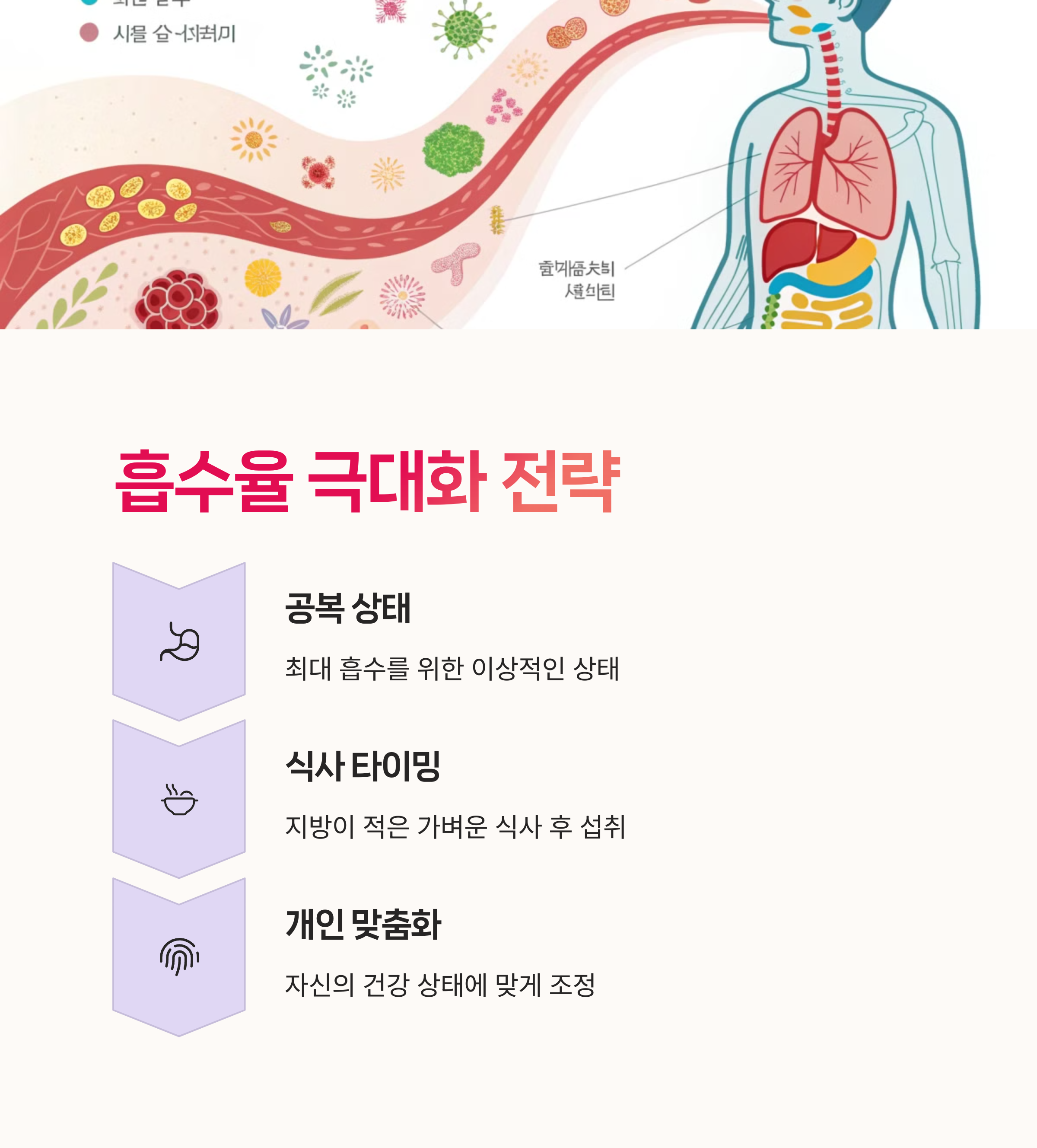 | 복용 시점 | 흡수율 | 위장 반응 | 복합 영양소 연계 |