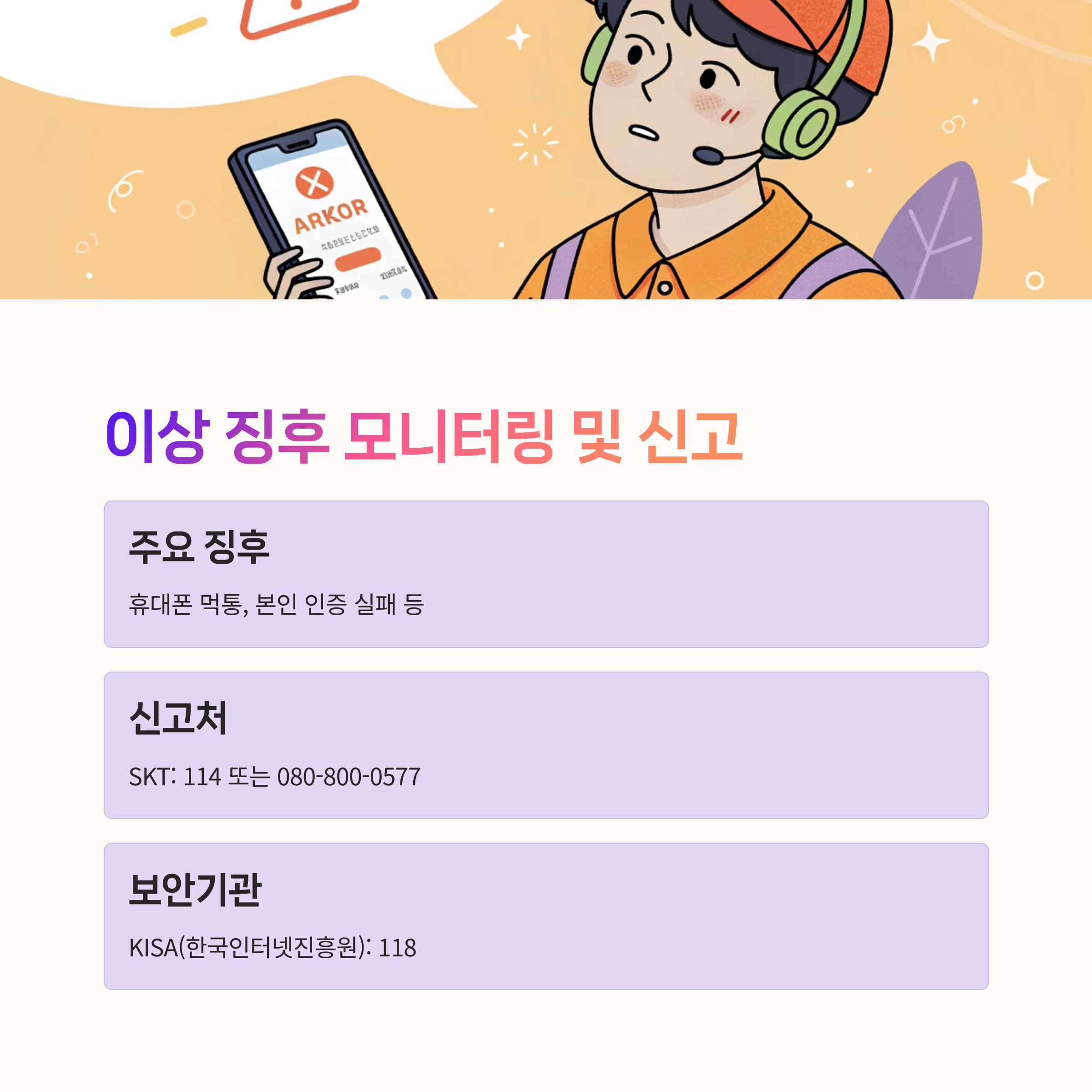 휴대폰이 갑자기 먹통이 되거나, 본인 인증이 실패하는 등 이상 징후가 나타난다면